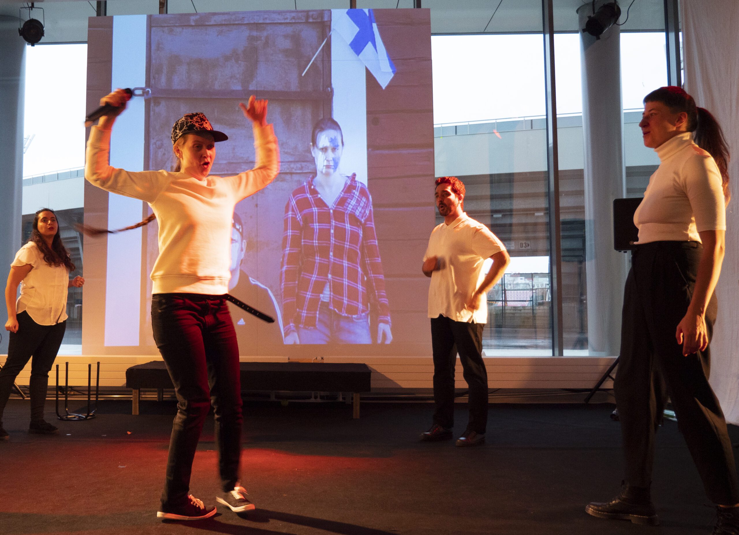 Siperian tapauksessa ryhmä- ja aihelähtöisyys toimii ihan hyvin. 70-luvulla syntyneiden maailmankuva on sen verran laaja aihe, että siitä voi tulla monenlaista lopputulosta. Kun olin katsojana hyväksynyt sen, ettei näytelmässä ollut Juonta, vaan erilaisia juonia, jotka ovat syntyneet näyttelijöiden luomien hahmojen kohtaamisista, kykenin pikkuhiljaa kiinnostumaan niistä teeseistä, joita tekijät eteeni toivat.